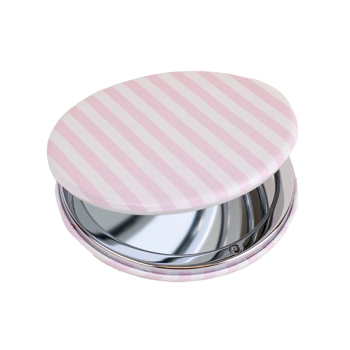 Classic Stripe Pocket Mirror White/ Light Pink 2.75"