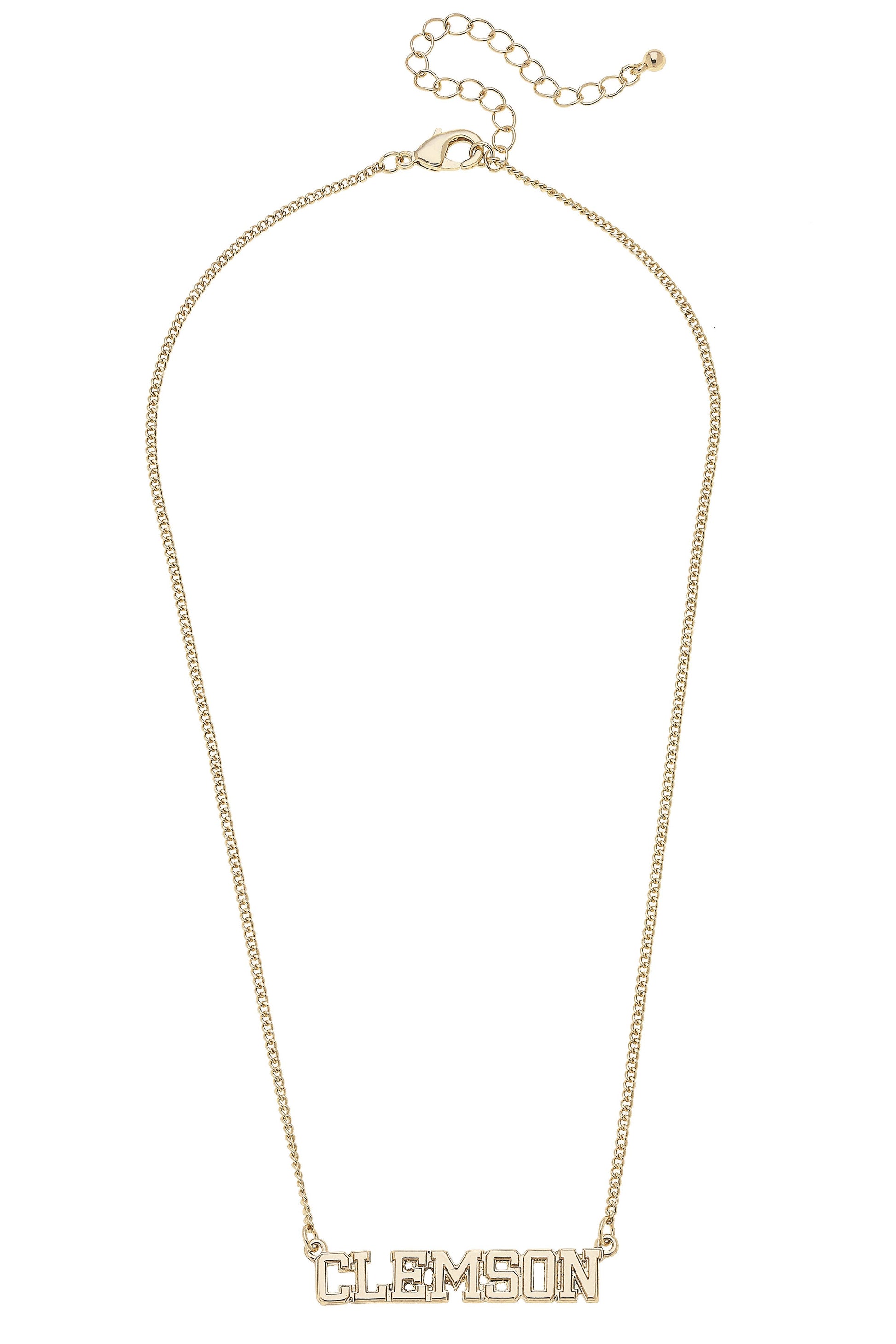 Clemson Tigers Varsity Outline Necklace in Shiny Gold