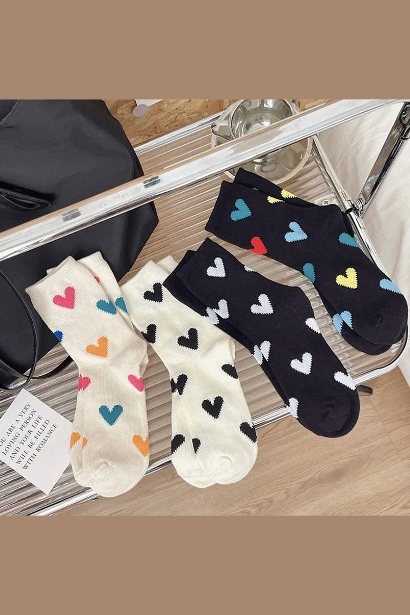 Colorful Heart Pattern Socks, 6 Pairs In 1 Pack