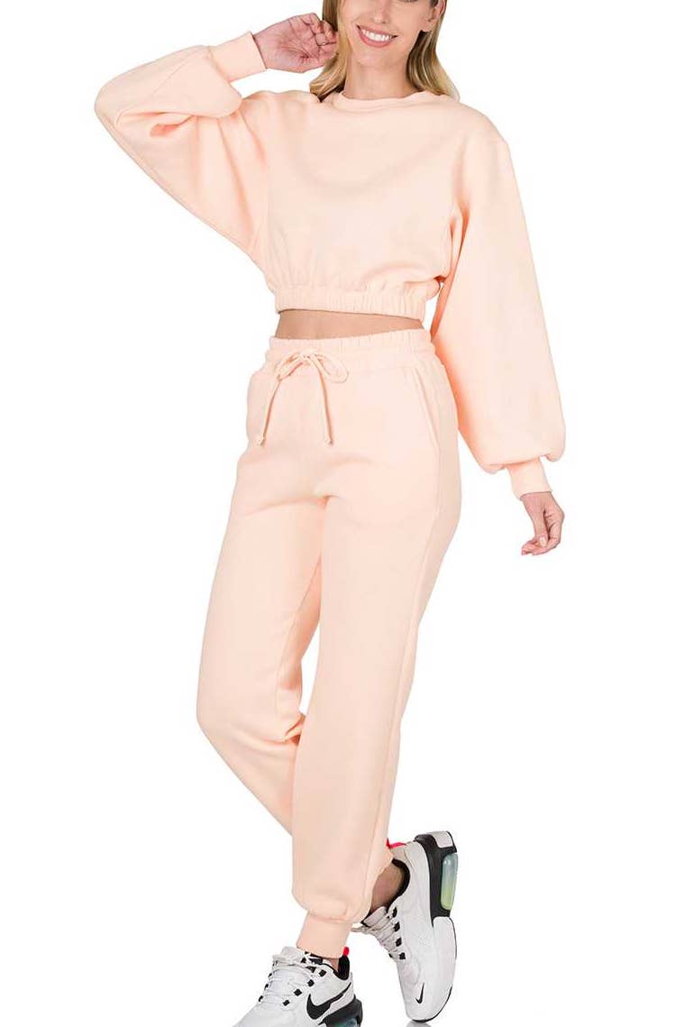 Cropped Pullover And Jogger Pants Set